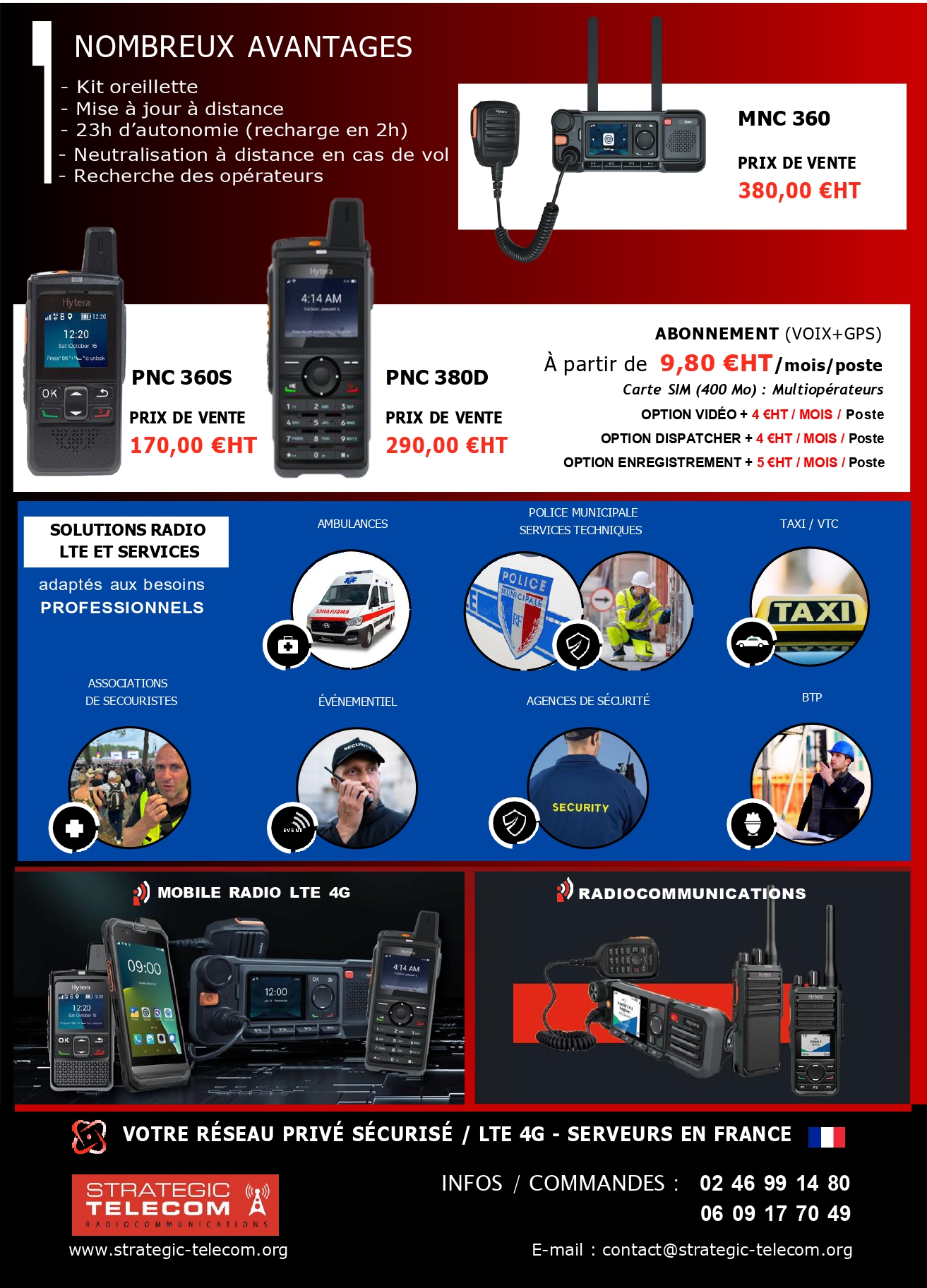 Solutions radio, LTE, passerelles multiservices, PTI et géolocalisation pour organisations professionnelles et services sensibles.
